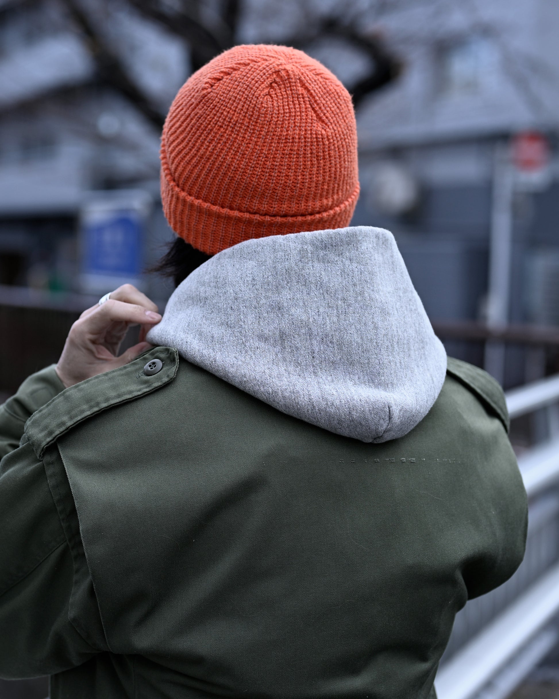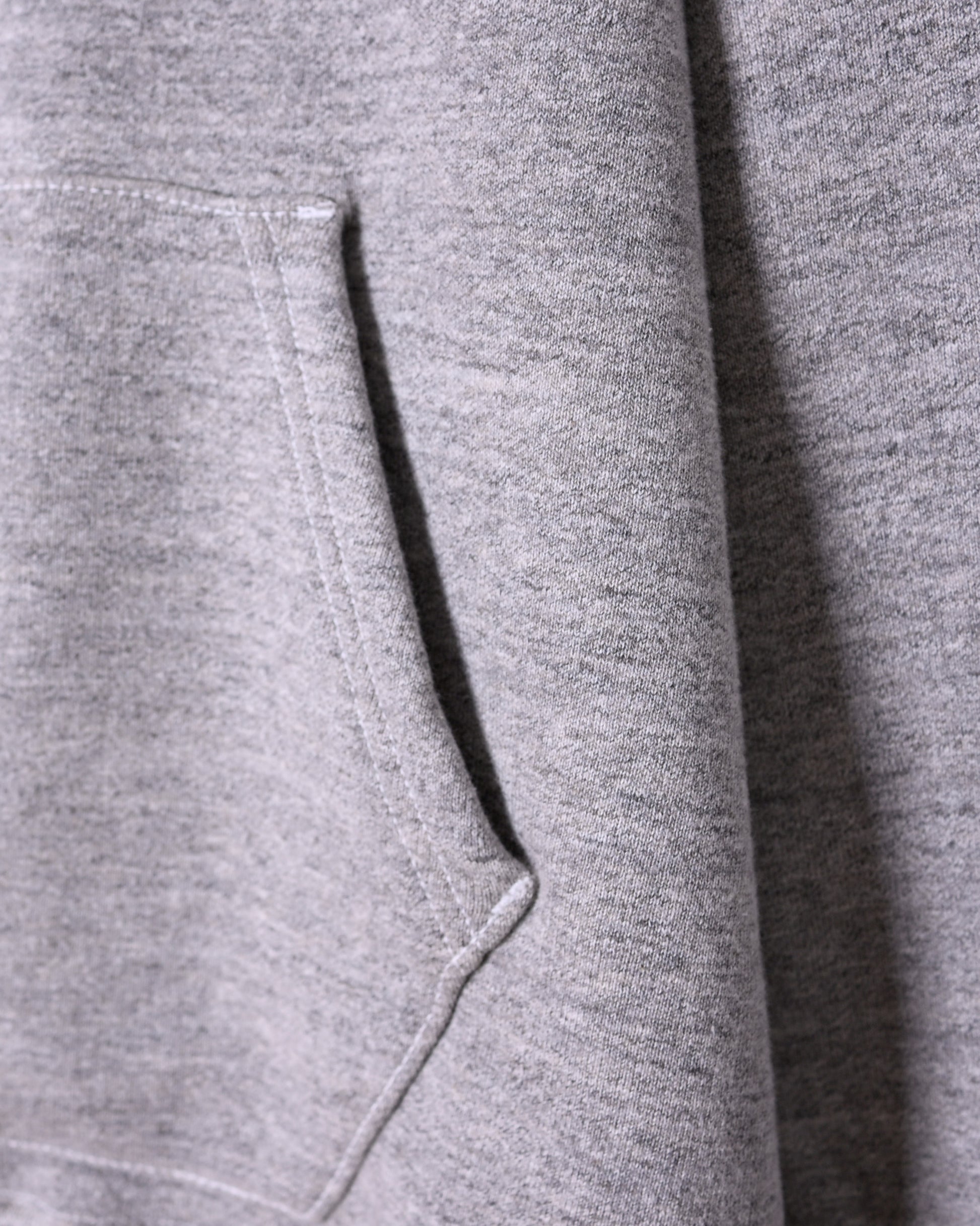大正時代から稼働している希少な編み機”吊編み機”の生地は、空気を含みながらゆっくりと編まれるため、独特な風合いと肌に吸い付く柔らかさがあります。この着心地を最大限に活かすとともに、ヴィンテージミシン(ユニオンスペシャル)の独特な縫製ラインや、フードがしっかり立ち上がる設計。丸胴の生地では、困難とされていた、袖を通しやすい設計から袖元や前Vガゼットの仕様など至る所にさりげなく風格を感じるギミックを散りばめています。