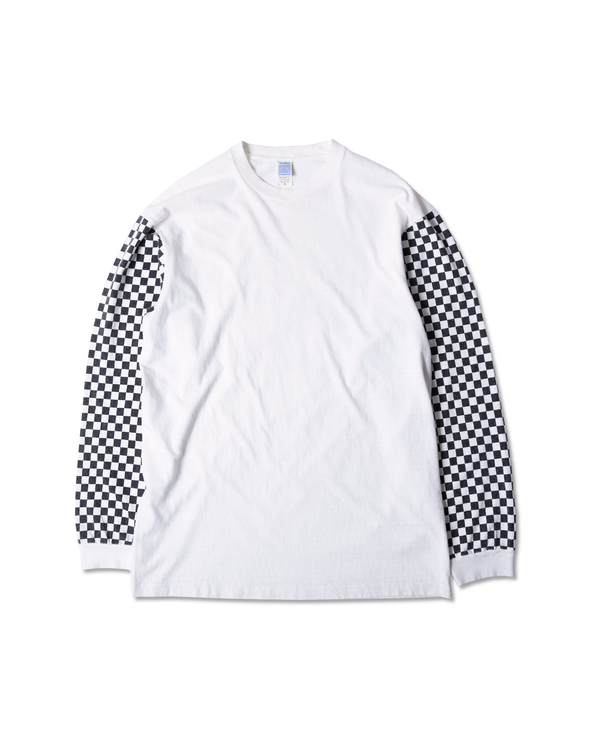 裁ち身でプリントを施したチェックプリントは、ブロック一つ一つにも表情がでるようにウォッシュアウトした後に特殊加工を施し、ヴィンテージの表情へ昇華した一枚に仕上がりました。