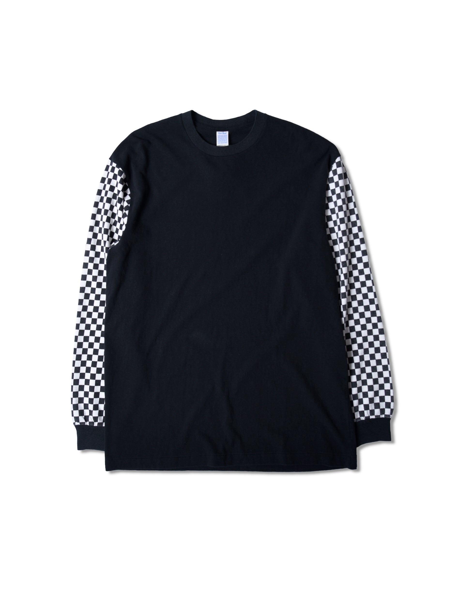 オールドスケートの時代背景から着想を得たデザインは、贅沢にも袖パーツだけの為に生地を制作し、「リメイクで誰かが身生地と袖生地を付け合わせて作ったロンT」というストーリーから生まれました。