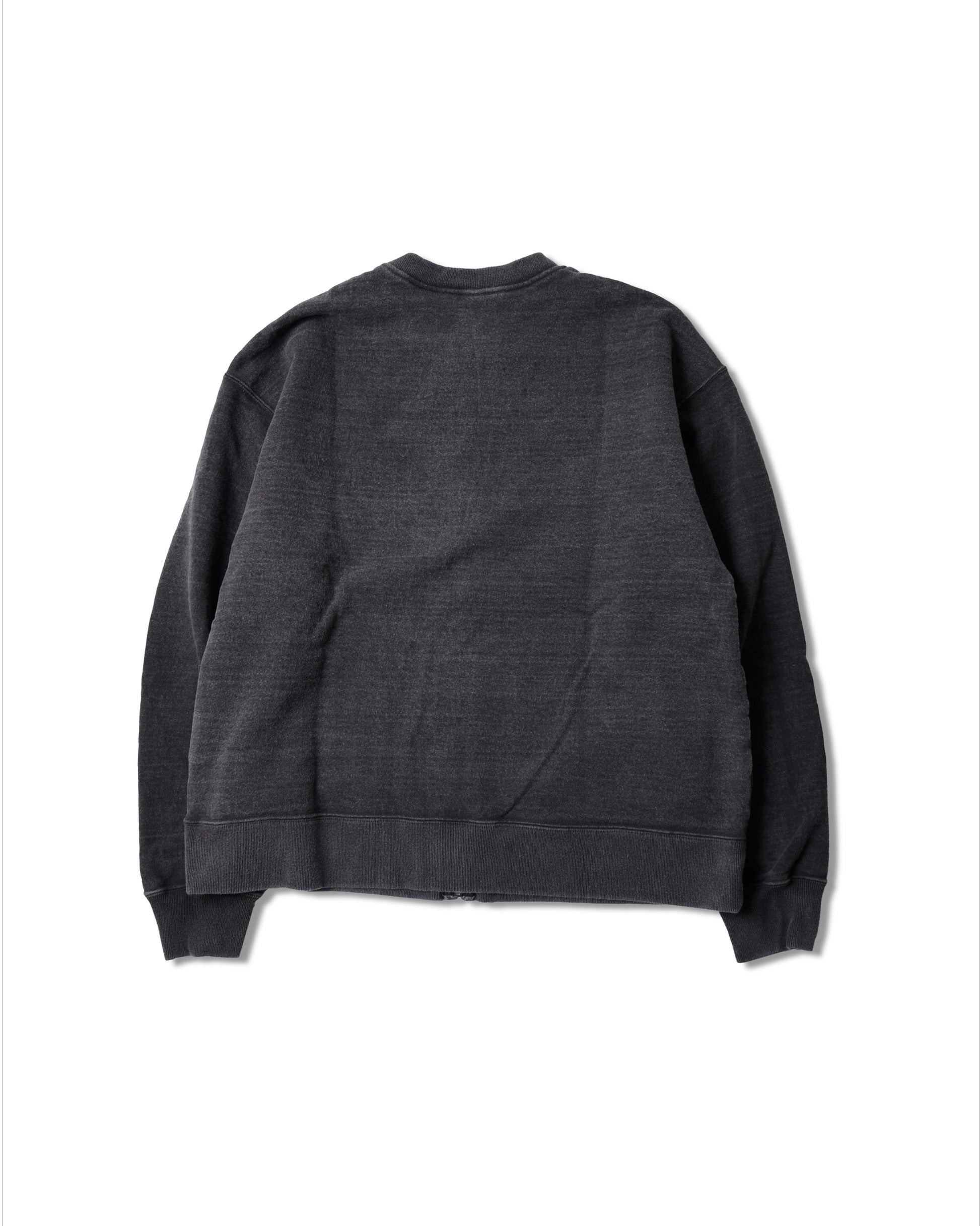 クルーネックスウェットを切ってZIPをつけたというストーリーから生まれたこのスウェット。60s〜70sのヴィンテージらしく身幅を広め、着丈を短めに設定。