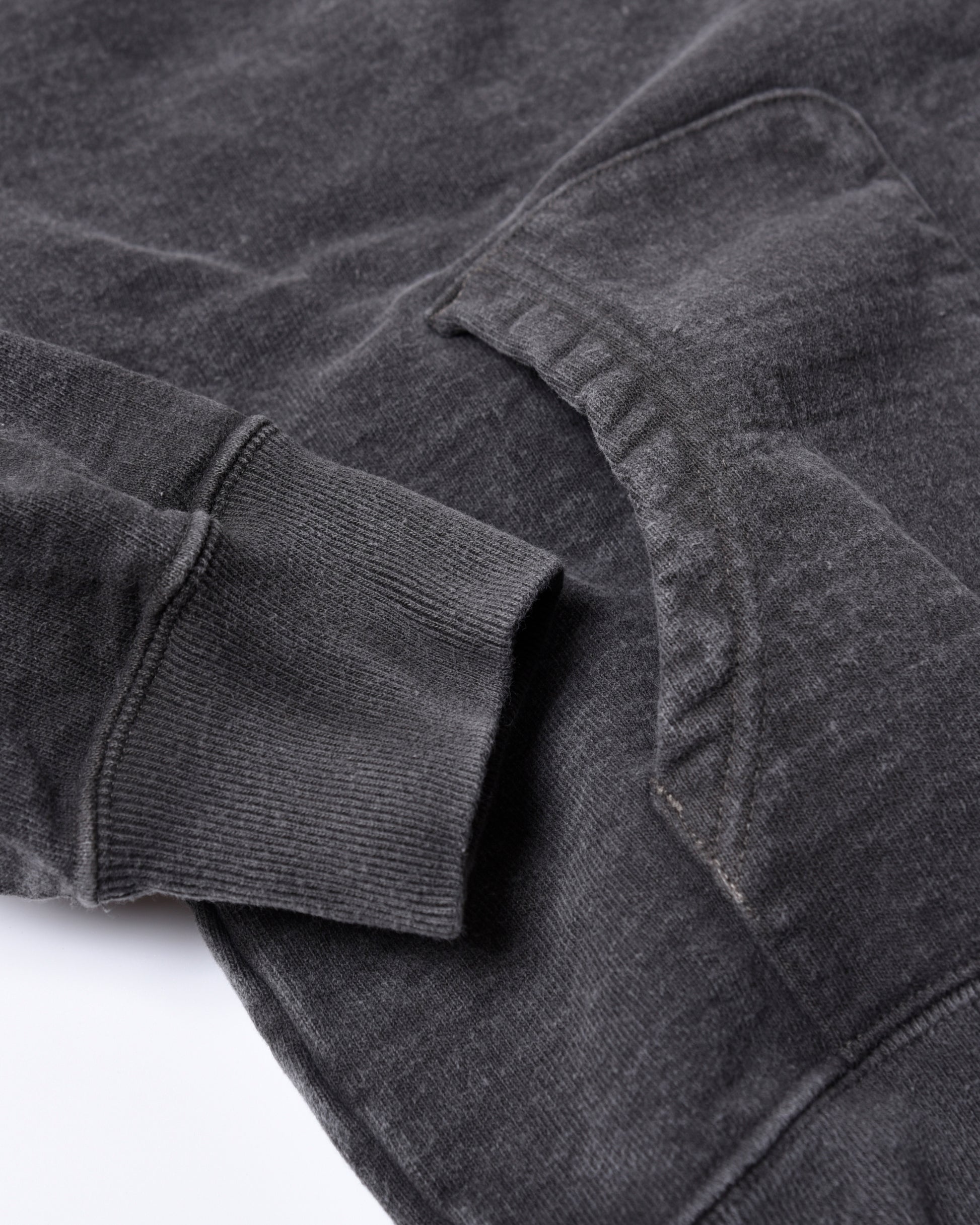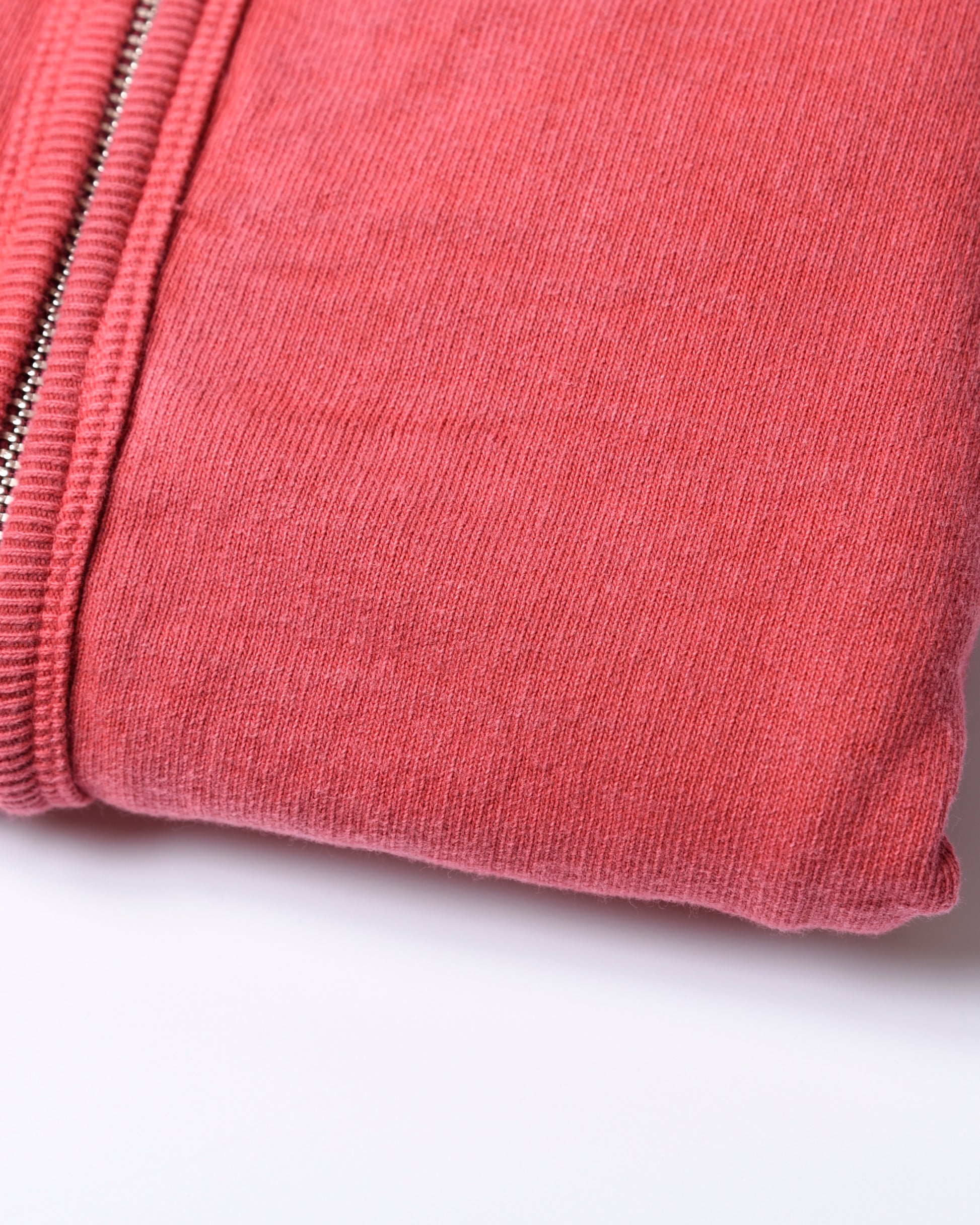 表に10番のオープンエンド糸という糸を使用し、敢えてドライでざらっとした質感を出したスウェットカーディガン。 これはスウェットの聖地であるアメリカの、カラッとした風土で作られる生地感を表現しました。
