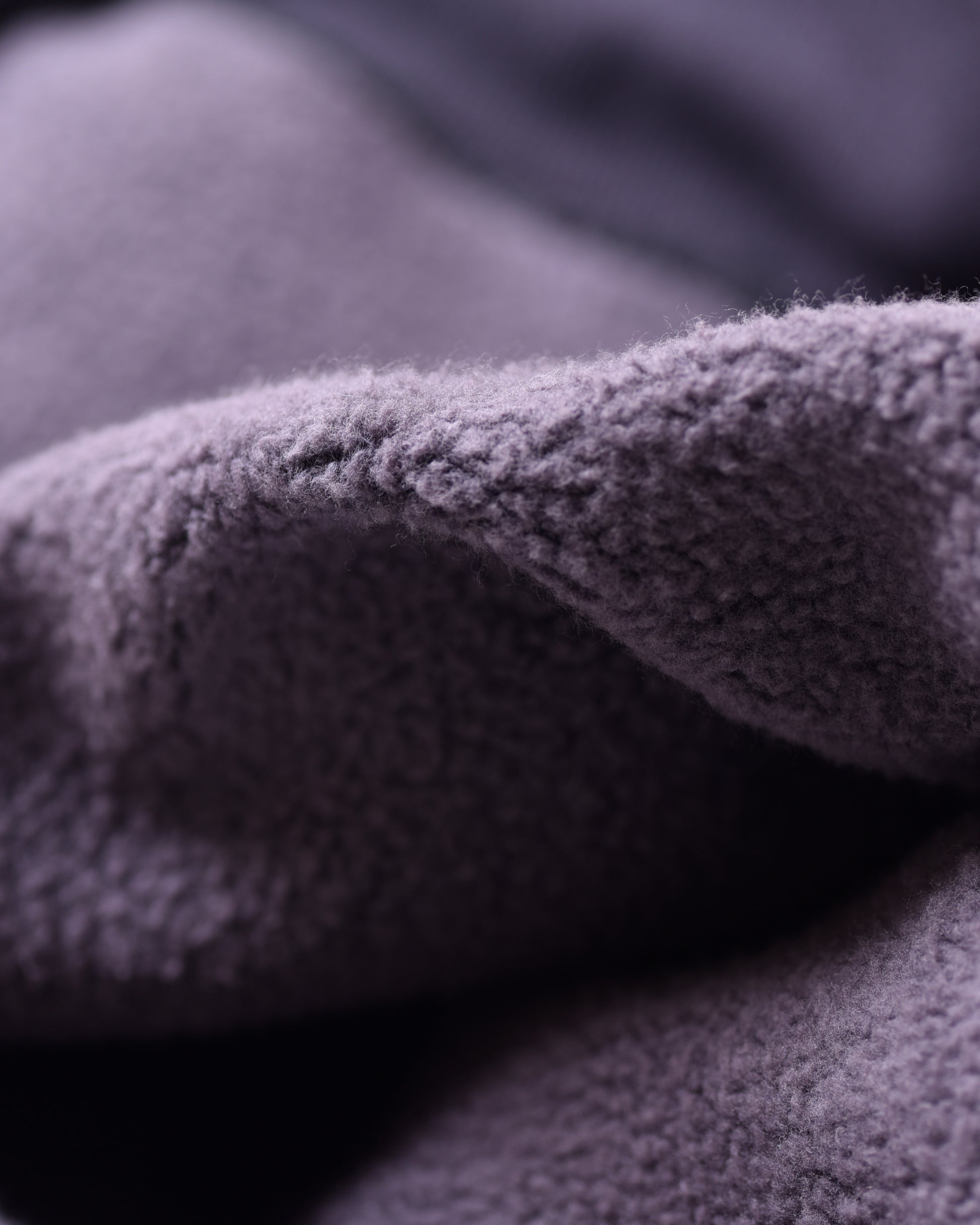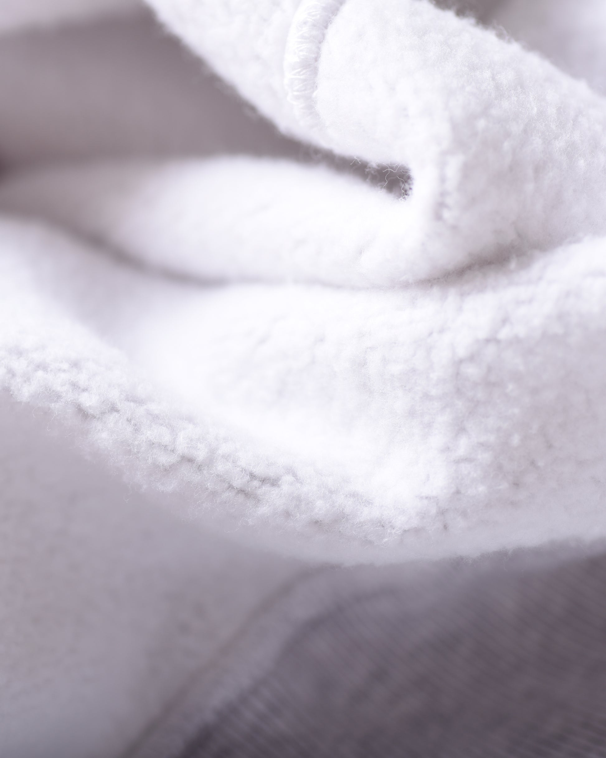 定番ウェイトの生地をあえて、日本生産工場でも珍しい起毛機「ナッピング」と言われる編地の根本からふわふわと毛立たせる機械を使用した"ナッピング起毛"を施しました。通常の起毛に比べて毛抜けしにくいことや、通常よりも生地の厚みを感じられるのが特徴です。軽やかな生地合いだが、ヘビーウェイト並みの安心感を感じさせる風合いをお楽しみください。